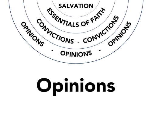 Finally, we believe third-order doctrines of Opinions are issues where Christians can disagree yet still maintain close fellowship within a local church.